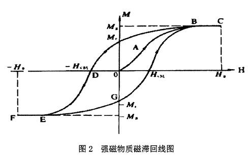 磁開關(guān)內(nèi)部裝有鐵質(zhì)的彈性簧片,在低頻磁場中,鐵質(zhì)簧片被磁化,從而使彈性簧片吸合導(dǎo)通,而油位計內(nèi)部磁翻板未達(dá)到磁開關(guān)動作值的位置,所以監(jiān)控誤報油位異常信號。當(dāng)機(jī)組停機(jī)時,勵磁電纜中電流消失,但此時磁開關(guān)誤動作信號并未復(fù)歸,下面將通過磁滯回線的概念來解釋此現(xiàn)象。