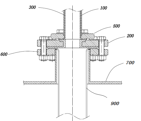 針對(duì)傳統(tǒng)頂裝式軟化水液位計(jì)的這些弊端,在多次試驗(yàn)的基礎(chǔ)上,對(duì)現(xiàn)有的內(nèi)襯工藝與結(jié)構(gòu)做了改進(jìn),發(fā)明了頂裝式軟化水液位計(jì)的一種新工藝及其結(jié)構(gòu),如下圖所示,其提供了*一連接件和連接內(nèi)襯。該連接內(nèi)襯具有用于連通內(nèi)襯連接口的*一連接口、自*一連接口向外成環(huán)形設(shè)置的*一密封部、用于與被測(cè)容器連通的*二連接口和自*二連接口向外成環(huán)形設(shè)置的*二密封部。由于該*一連接件和連接內(nèi)襯為單獨(dú)設(shè)置,可以單獨(dú)制造,因此*一密封部和*二密封部可以制作的足夠大,從而實(shí)現(xiàn)*一密封部與浮筒內(nèi)襯的翻折部密封抵接;同時(shí),連接內(nèi)襯的*二密封部用于與容器實(shí)現(xiàn)密封連接。由此,該連接內(nèi)襯可以與浮筒內(nèi)襯和容器開口內(nèi)的護(hù)筒形成完全密封的連接,從而避免連接處的金屬面受腐蝕,使生產(chǎn)安全順利地進(jìn)行,免受因發(fā)生生產(chǎn)安全事故對(duì)生命和財(cái)產(chǎn)造成的安全威脅。