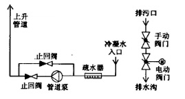 5.1如上圖所示,在原上升管道與疏水器之間增加兩條回路,其中主路由止回閥、管道泵組成。管道泵與換熱器的三暢磁翻板液位計(jì)連鎖,根據(jù)現(xiàn)場(chǎng)具體運(yùn)行情況設(shè)置高、低液位管道泵自動(dòng)啟停,磁翻板液位計(jì)的數(shù)值上傳至廠區(qū)指揮中心,實(shí)時(shí)遠(yuǎn)程監(jiān)控,同時(shí)增設(shè)管道泵的緊急停止按鈕。旁路僅設(shè)置止回閥。在正常情況下,凝結(jié)水可以通過旁路的止回閥順利地回收到凝結(jié)水回收裝置中;在非正常情況下,則可以憑借管道泵加壓后,順利回收。