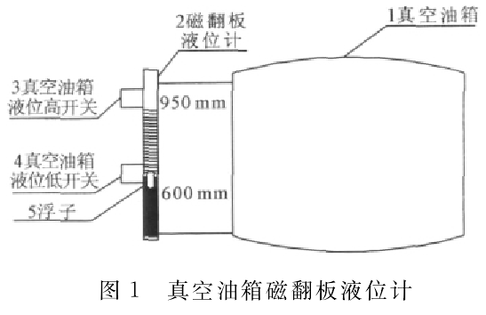 密封油真空油箱液位顯示采用防爆汽油罐液位計,設(shè)置2個微動開關(guān)(干簧管液位開關(guān))作為液位高低報警。微動開關(guān)一個磁鐵安裝在一個干簧片上,浮子與磁鐵相互作用,磁鐵微微轉(zhuǎn)動帶動簧片的動作,從而使液位開關(guān)的觸點斷開(或閉合),實現(xiàn)開關(guān)狀態(tài)的轉(zhuǎn)變。油位正常時磁翻板顯示油位為950mm。