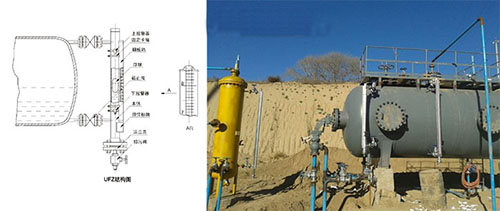 2、在罐內(nèi)不帶壓力的狀態(tài)下以手動(dòng)方式往儲(chǔ)罐內(nèi)注水,當(dāng)水位略高于液位計(jì)進(jìn)水管時(shí)停止注水,尿素溶液液位計(jì)打開下連接法 蘭口手動(dòng)球閥E并松開罐體與被校液位計(jì)間的連接法蘭F(不取下,使水流不過沖),直到管 路中 無(wú)涌動(dòng)流時(shí),關(guān)閉E,取下法蘭,待罐內(nèi)液體平穩(wěn)時(shí)打開E,再待呈滴流狀態(tài),穩(wěn)定1min(必要 時(shí)可通過排水閥門排水,提高檢測(cè)效率);
