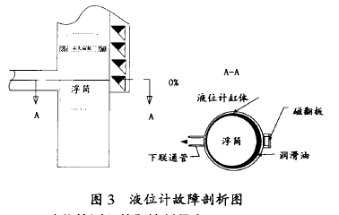 3.1 液位計(jì)構(gòu)造存在缺陷用人工進(jìn) F油試驗(yàn)時(shí),發(fā)現(xiàn)液位計(jì)指示的液位在O%-37%區(qū)間內(nèi)變化緩慢。如圖2所示,