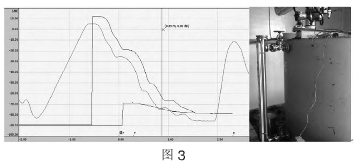 圖4為鹽酸配置槽正在加稀釋水且液位達(dá)到2.7m(量程3m)時(shí)回波包絡(luò)線圖。此時(shí),測(cè)量值跳動(dòng)明顯。分析原因:雷達(dá)液位計(jì)無(wú)明顯回波信號(hào),且回波信號(hào)波動(dòng)較大。該液位計(jì)在中低液位計(jì)加料時(shí),測(cè)量值準(zhǔn)確、穩(wěn)定,但高液位加稀釋水時(shí),加料口距離雷達(dá)液位計(jì)距離過(guò)近,飛濺起的水花對(duì)回波產(chǎn)生了較大的干擾,從而影響了測(cè)量。