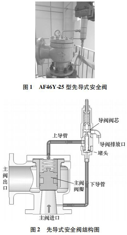 磁翻板液位計常見的故障包括: 主閥導閥泄漏、導閥超壓不動作、主閥未隨導閥動作。主閥導閥泄漏失效原因: 密封面臟污或損傷,零部件卡阻、密封墊圈老化變形; 導閥超壓不動作失效原因: 導閥密封面銹蝕粘合或材料變形、導閥彈簧過緊或卡阻、導閥下導管堵塞; 主閥未隨導閥動作失效原因: 主閥運動卡阻、導閥排氣量過小。然而,安全閥起跳不回座故障在試驗過程及工業(yè)現(xiàn)場也是非常常見的,國內對于磁翻板液位計起跳不回座失效分析的相關研究較少。本研究以某公司生產(chǎn)的 AF46Y-25 型磁翻板液位計為研究對象,研究導閥結構并分析其動作過程。在對其開展動作性能試驗時,發(fā)現(xiàn)該安全閥實際回座壓力遠低于標準要求,排放時間過長,回座失效。因此,對其進行受力分析,以探討回座失效的原因。