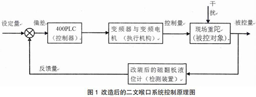 從圖 1 中可以看到改造后的系統(tǒng)采用帶負(fù)反饋的閉環(huán)控制原理,通過反饋系統(tǒng)使系統(tǒng)的精確度提高,響應(yīng)時間縮短。當(dāng)受控客體受干擾的影響,其實際狀態(tài)與期望狀態(tài)出現(xiàn)偏差時,控制主體將根據(jù)這種偏差發(fā)出新的指令,以糾正偏差,抵消干擾的作用。
