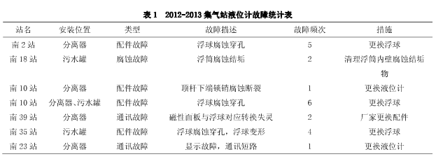 1、集氣站液位計運(yùn)行現(xiàn)狀