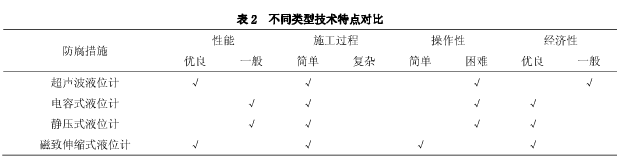 對以上幾種液位計,從性能、施工情況、操作性以及經(jīng)濟(jì)性等方面進(jìn)行技術(shù)比較,見表2: