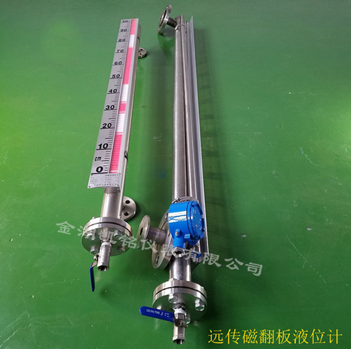 磁翻板液位計(也可稱為磁性浮子液位計)根據(jù)浮力原理和磁性耦合作用研制而成。當被測容器中的液位升降時,液位計本體管中的磁性浮子也隨之升降,浮子內(nèi)的永久磁鋼通過磁耦合傳遞到磁翻柱指示器,驅(qū)動紅、白翻柱翻轉(zhuǎn)180°,當液位上升時翻柱由白色轉(zhuǎn)變?yōu)榧t色,當液位下降時翻柱由紅色轉(zhuǎn)變?yōu)榘咨甘酒鞯募t白交界處為容器內(nèi)部液位的實際高度,從而實現(xiàn)液位清晰的指示。