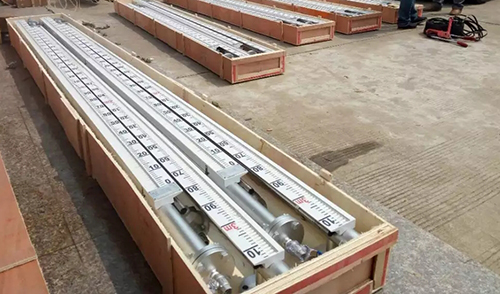 ⑺地下型液位計先把導(dǎo)管安裝在地下容器內(nèi),再把連接好的浮標(biāo)、浮球、連桿裝入導(dǎo)管,然后安裝上半部。